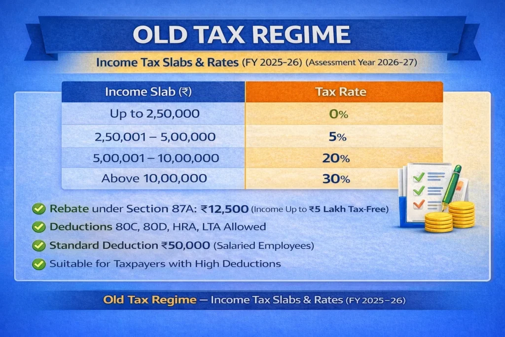 Old Tax Regime – Income Tax Rates for FY 2025–26 (AY 2026–27)