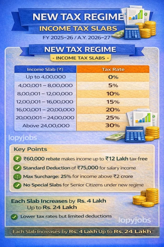 The new tax regime continues to be the default option, but for FY 2025–26, the government has provided significant relief by easing the tax slab rates under this regime. These changes are aimed at reducing the overall tax burden and increasing take-home income.
