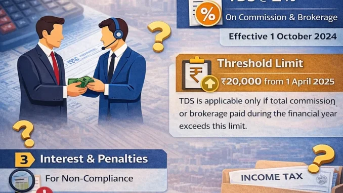This provision governs the deduction of TDS on commission or brokerage payments and is particularly relevant for businesses paying real estate agents, sales representatives, marketing intermediaries, or channel partners. A sound understanding of the applicable rate, threshold limits, and compliance requirements is essential to ensure smooth financial operations and avoid regulatory exposure.